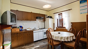 3 star apartment for 4+1 persons,a size of 55 m2 .Contains 3 beds, two large beds and one small bed.Also contains kitchen, bathroom and living room. Outside is a terrace of 10 m2 and a courtyard measuring 300 m2 .Equipped with air conditioning and internet access, satellite TV and radio, smoking is permitted and it's also suitable for pets.Kitchen is equipped with a fridge, oven and coffee maker.In the yard is a barbecue and a parking place.